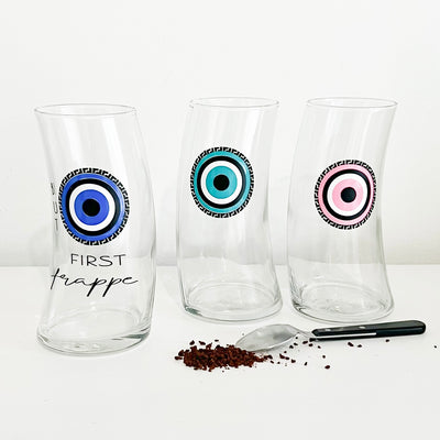 Bring home a touch of GREECE by serving up a FRAPPE in these gorgeous modern curved design glasses with our MATI design.