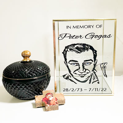 Please email us a high resolution photo of your loved one, along with all details or wording you would like to customise with.