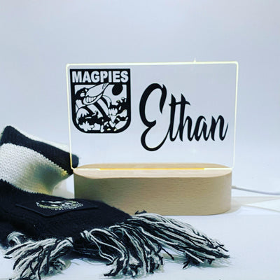 Enhance your child's room with our AFL night lights, adding that special touch. Not only do they offer the perfect amount of light for a sense of safety at night, but they also showcase your child's favorite team alongside their name.
