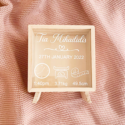 The recipient of this timeless money box will love the personalised detail showcasing their bubbas name and details.