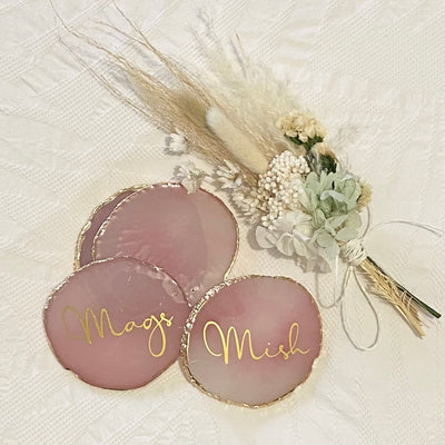 These Rose Quartz style coasters are sure to be a talking point at the table and are a perfect and beautiful addition to any home or wedding table setting.