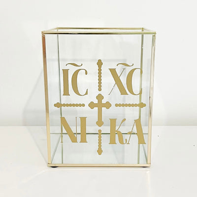 Use our beautiful GOLD mirrored glass holders to place your vigil oil holder and let the cross reflect, or put a candle in it instead and let it shine through for the perfect ambience and home decor.