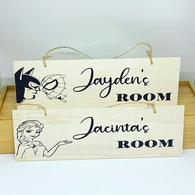 Our personalised door hangers can be customised with your name, any chosen character and vinyl colour of your choice.