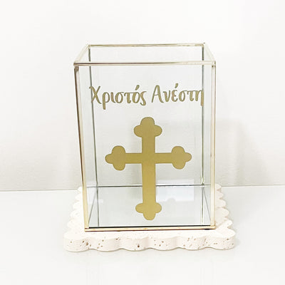 Use our beautiful GOLD mirrored glass holders to place your vigil oil holder and let the cross reflect, or put a candle in it instead and let it shine through for the perfect ambience and home decor.